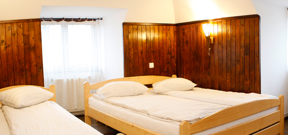 Un pat dublu și două paturi simple.