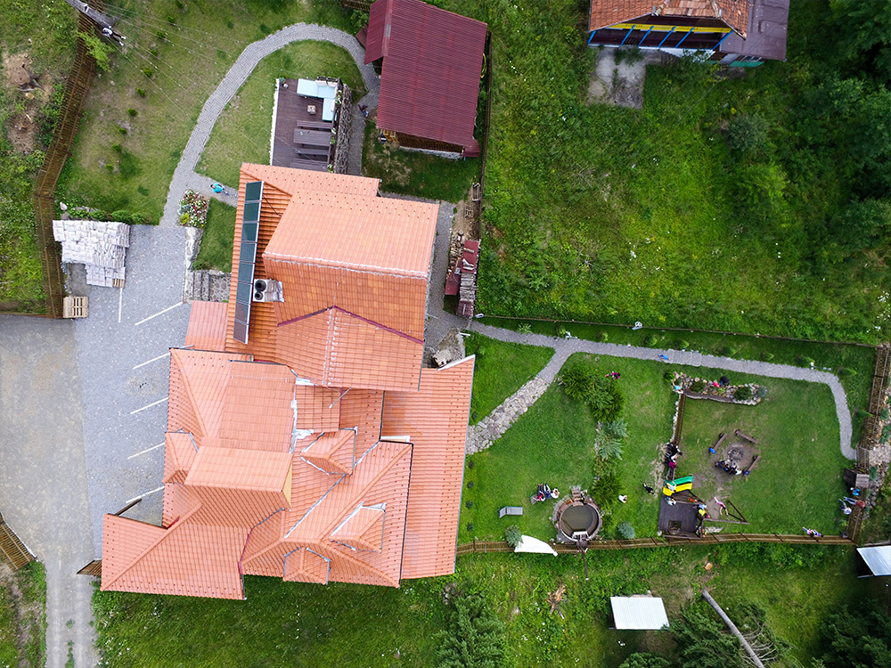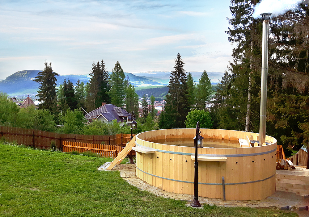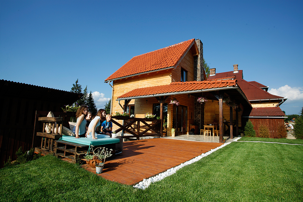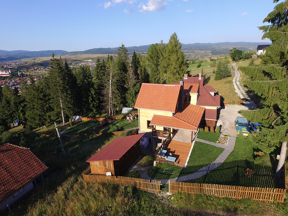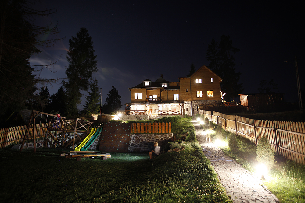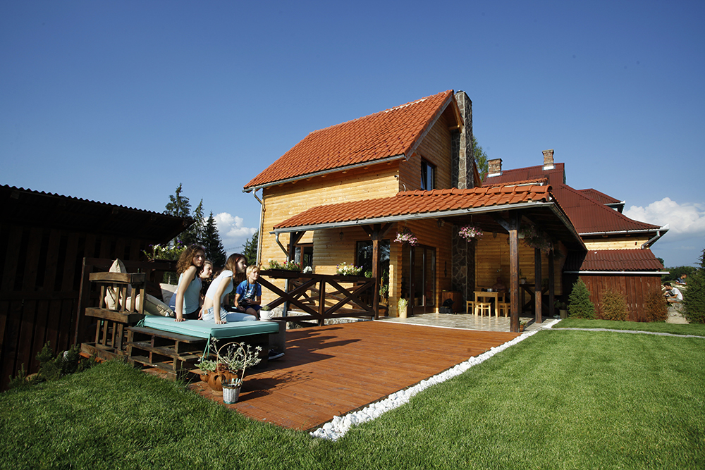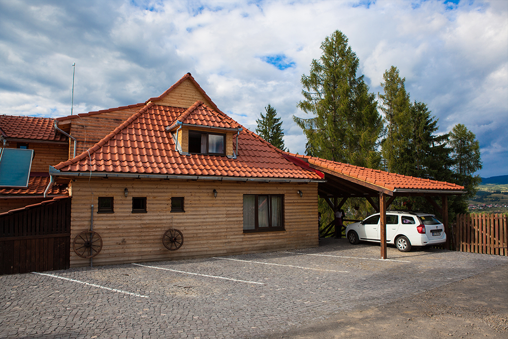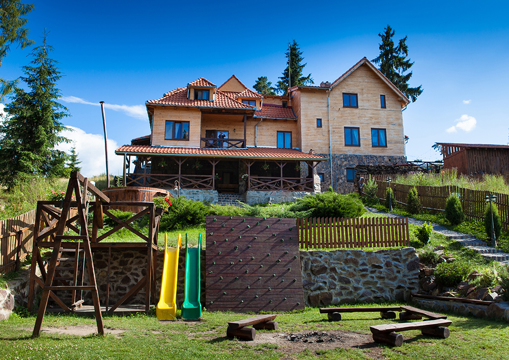 Farkas-lak kivülrőlParkoló, terasz, grillező, fürdődézsa A Farkas-lak turistaház őrszemként tornyosul Maroshévíz fölé, magasztosságot sugallva. A turista a kulcsosház magánparkolójába érkezik. Az ízlésesen kialakított, grillezővel felszerelt teraszról bámulatos panoráma tárul a szemei elé, ahol mesés környezetben fogyaszthatja el ebédjét. A tágas udvar tökéletesen illeszkedik a hegyvidéki környezethez, napozásra és sportolásra alkalmas felületet is biztosítva, a tábortűzhely pedig a romantikus, meghitt, kellemes estéket szolgálja. A Farkas-lakban a gyerekek sem unatkoznak. Kis kuckóval, csúszdával, mászófallal, hintával és tiroli kötélpáyával felszerelt játszótér várja hogy birtokukba vegyék. Ha már kiaknázták a játszóteret, irány a fürdődézsa. A sós vizű, fűtött székely jacuzziban kicsik és nagyok együtt lazíthatnak és közben a Kelemen-havasok gyönyörű panorámája átölel. |