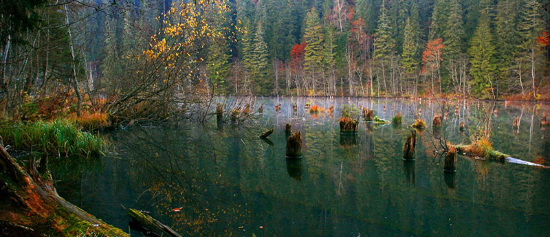 Lacul Roşu şi Cheile Bicazlac baraj natural, stânci, chei Un lac natural, format în 1837 în munţii Hăşmaşului, la 62 de km de Topliţa. O alunecare de teren a zăgăzuit râul care curgea prin defileu. Tulpinile de copaci care se mai ridică şi azi din apă sunt dovada că acolo a existat o pădure de brazi. Ele dau farmecul Lacului Roşu. |