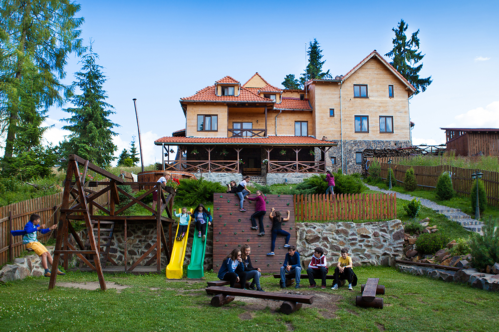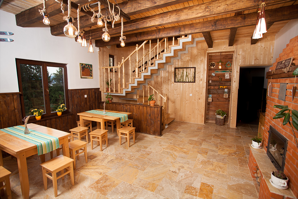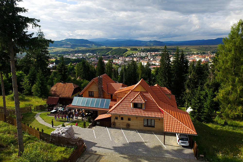 Farkas-lak kivülrőlParkoló, terasz, grillező, fürdődézsa A Farkas-lak turistaház őrszemként tornyosul Maroshévíz fölé, magasztosságot sugallva. A turista a kulcsosház magánparkolójába érkezik. Az ízlésesen kialakított, grillezővel felszerelt teraszról bámulatos panoráma tárul a szemei elé, ahol mesés környezetben fogyaszthatja el ebédjét. A tágas udvar tökéletesen illeszkedik a hegyvidéki környezethez, napozásra és sportolásra alkalmas felületet is biztosítva, a tábortűzhely pedig a romantikus, meghitt, kellemes estéket szolgálja. A Farkas-lakban a gyerekek sem unatkoznak. Kis kuckóval, csúszdával, mászófallal, hintával és tiroli kötélpáyával felszerelt játszótér várja hogy birtokukba vegyék. Ha már kiaknázták a játszóteret, irány a fürdődézsa. A sós vizű, fűtött székely jacuzziban kicsik és nagyok együtt lazíthatnak és közben a Kelemen-havasok gyönyörű panorámája átölel. |