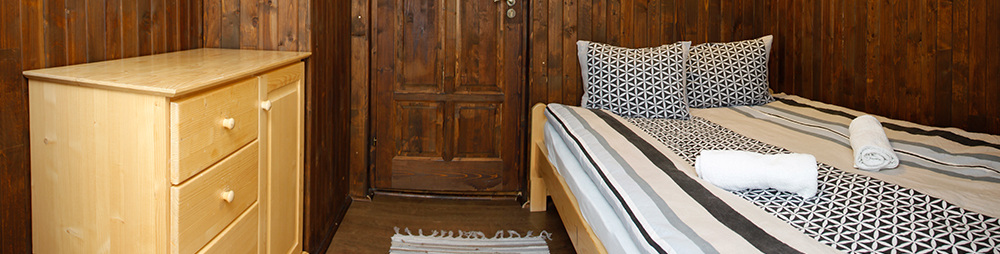 A főbejárattal szemben lévő hálószoba ablaka a Kelemen-havasok csúcsaira néz. Minden évszakban gyönyörű panoráma tárul elénk. A szobában 4 fekhely van: 1 emeletes ágy és 1 dupla ágy. Fogas, éjjeliszekrények és ruhásszekrény egészíti ki a háló bútorzatát.